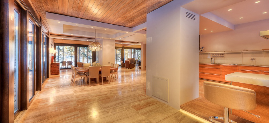 En cuanto al interior de estas casas su mantenimiento es similar al de cualquier tipo de construcciones, siendo únicamente el suelo el que precisa unos mayores cuidados. Su uso y los cambios de humedad dentro de la casa, son los factores que más pueden dañarlos. Normalmente valdrá con dar una capa de barniz para que el suelo reluzca como el primer día.